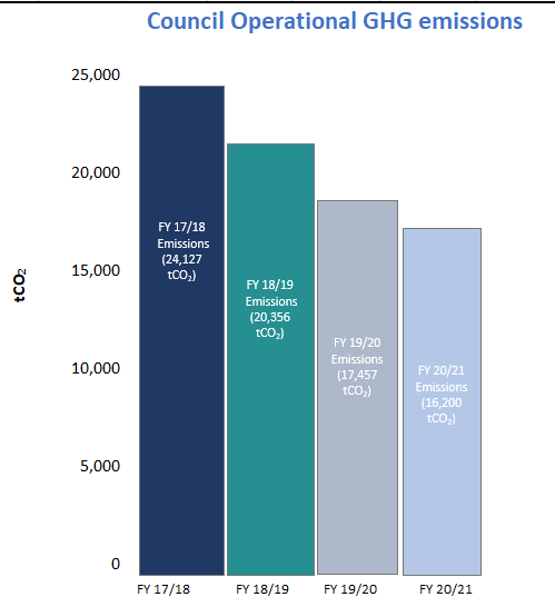 The reduction expected will be measured against the FY 2017/18 base year of Council’s operational greenhouse gas emissions.